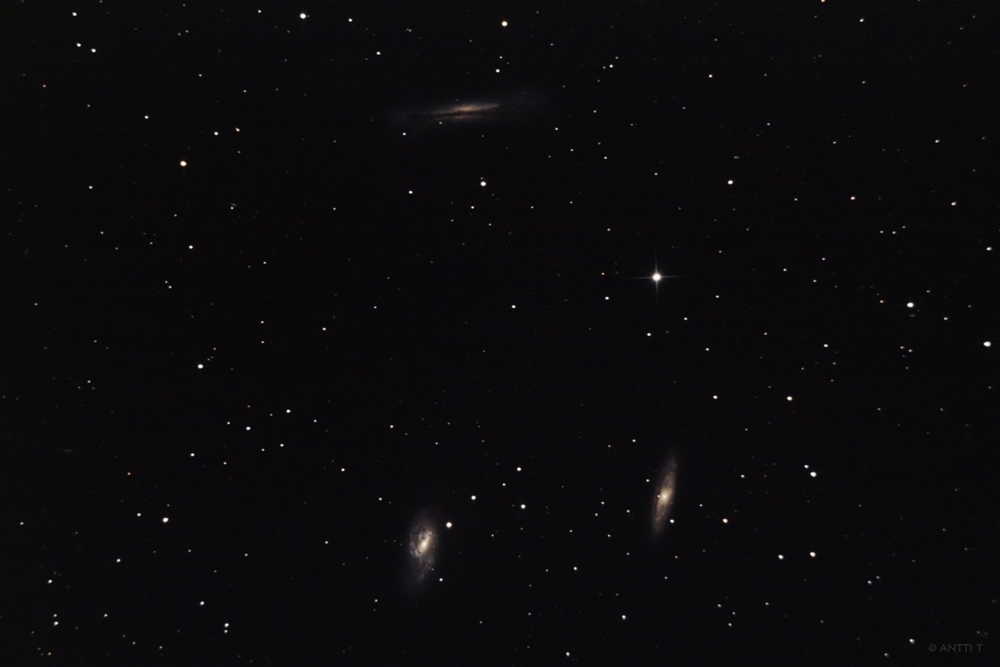 Kuvasin 22.- ja 23.03.2010 yönä Leijonan tähdistön kirkkaita galakseja M65, M66 ja NGC3628. Taivaalla loistava puolikuu vaalensi taustataivaan ja vaikeutti kuvankäsittelyä.